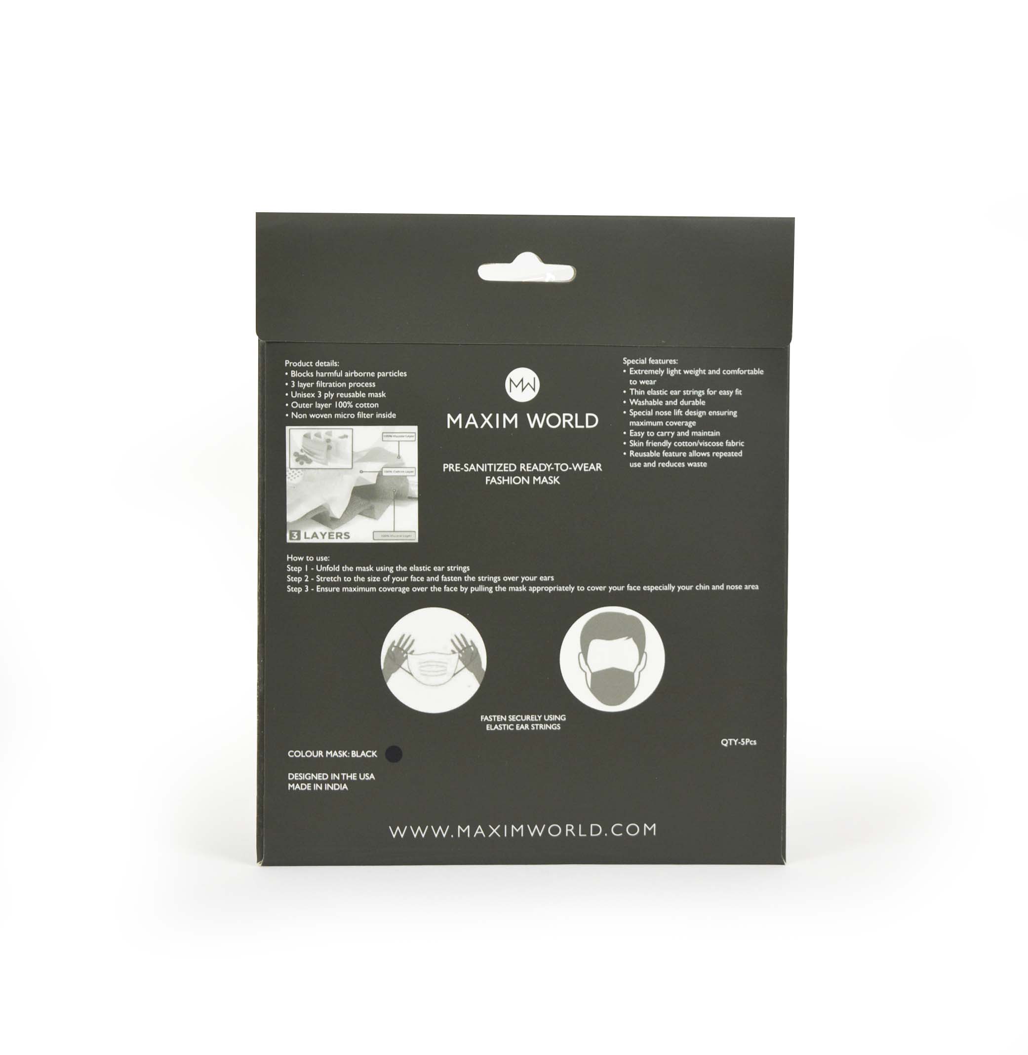 Reusable cloth mask; 3 layer; 100 % cotton; inner non woven filter layer
